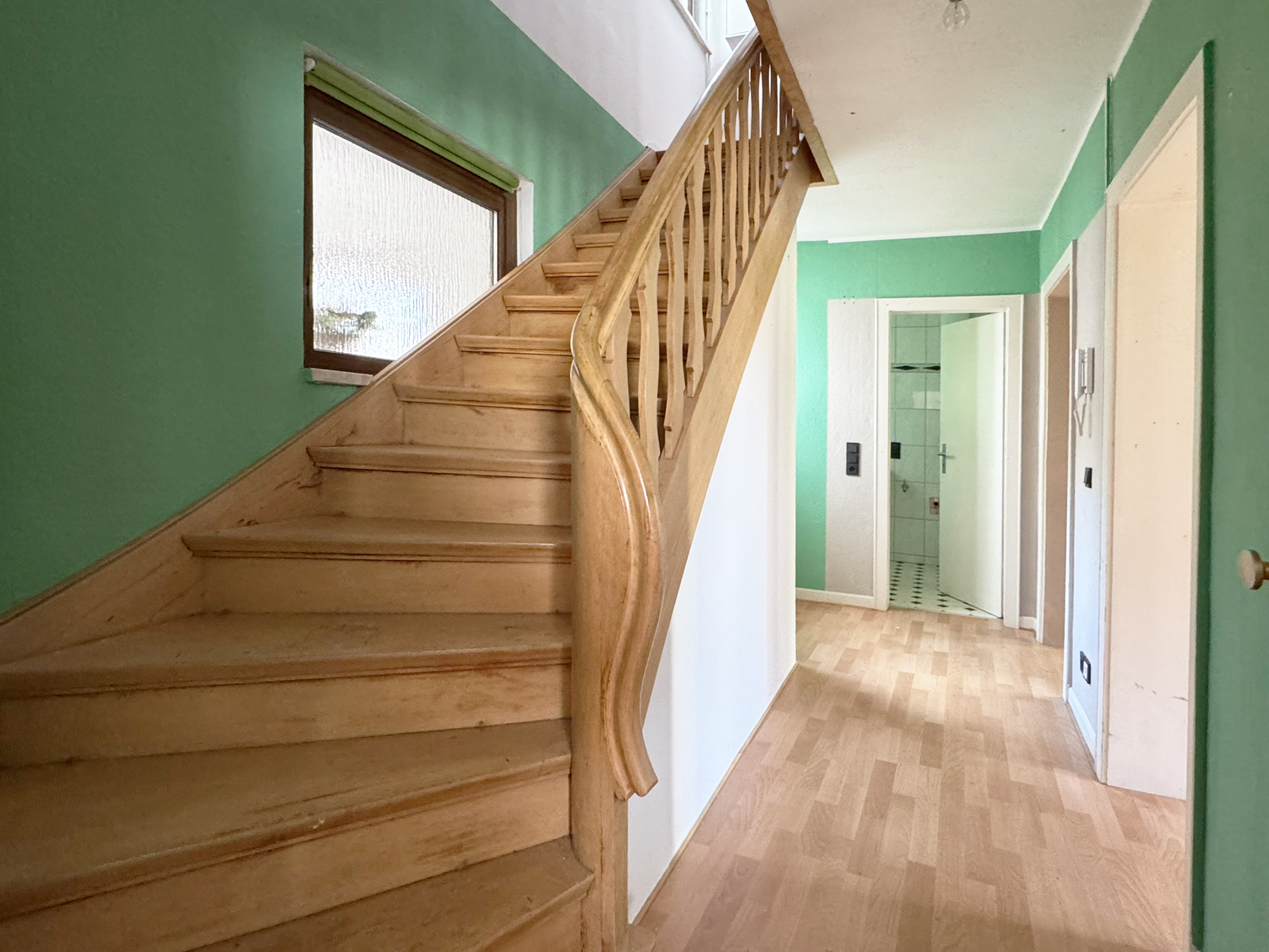 Hinterhaus (Anbau, ca. 1972): Dieser Gebäudeteil befindet sich in einem gepflegten und sofort bewohnbaren Zustand. Mit wenigen Renovierungsmaßnahmen kann dieser Bereich direkt bezogen werden – ideal für Käufer, die schrittweise sanieren möchten, ohne auf eine sofortige Nutzung verzichten zu müssen.