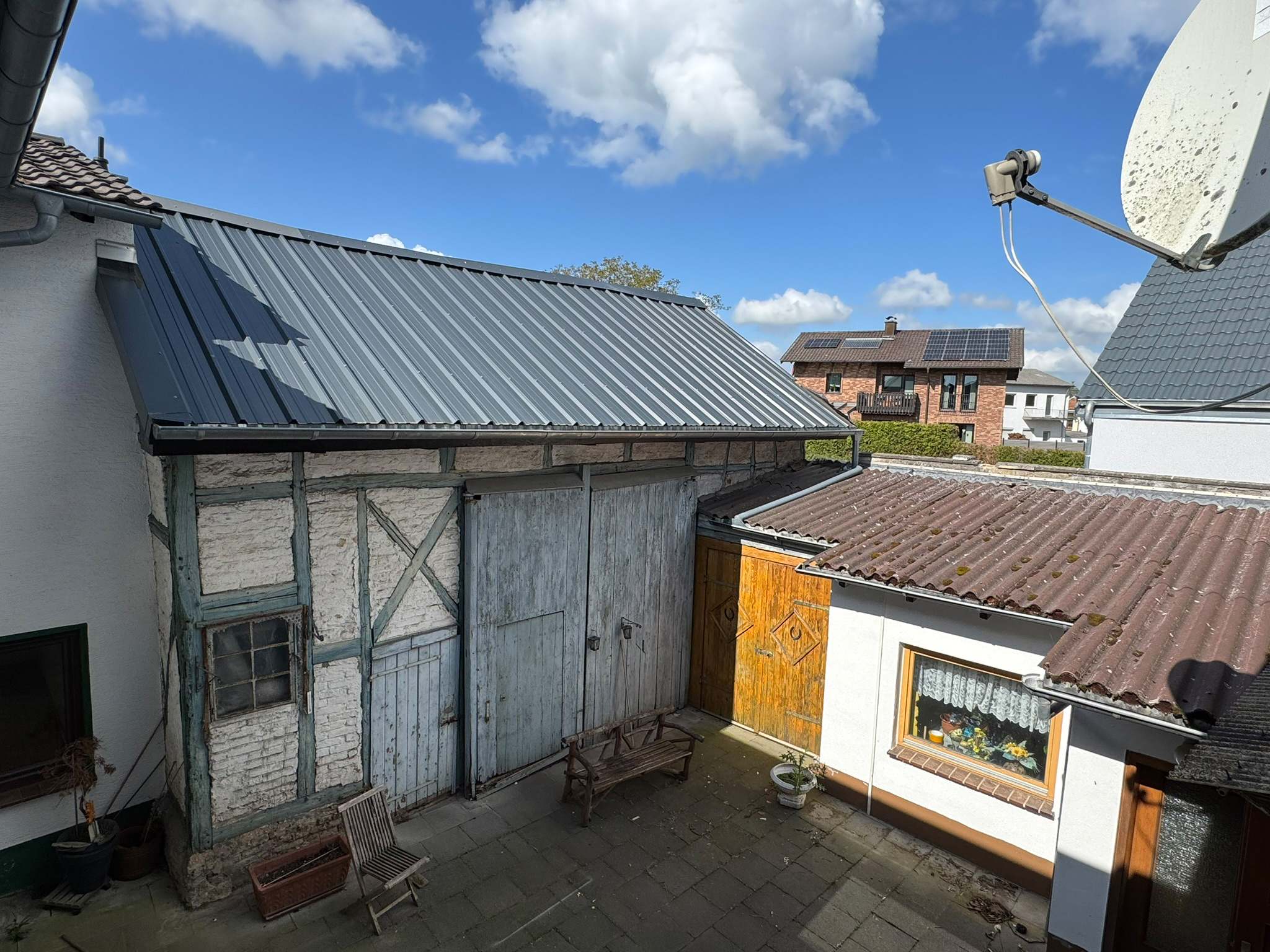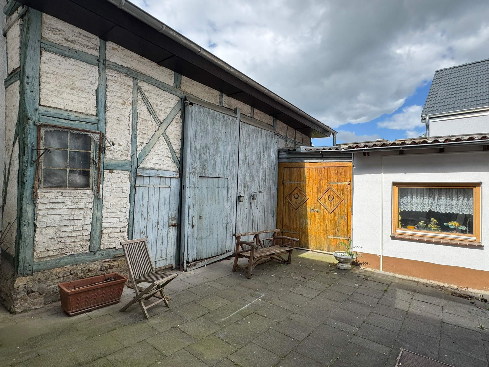 Der Innenhof mit angrenzender ehemaliger Scheune und kleiner Werkstatt bietet vielseitige Nutzungsmöglichkeiten – ob als Lagerfläche, Hobbyraum oder potenzielle Erweiterung der Wohnfläche. Der rückwärtige Gartenbereich sorgt für zusätzliche Gestaltungsmöglichkeiten und bietet Raum für Erholung oder eine naturnahe Nutzung.