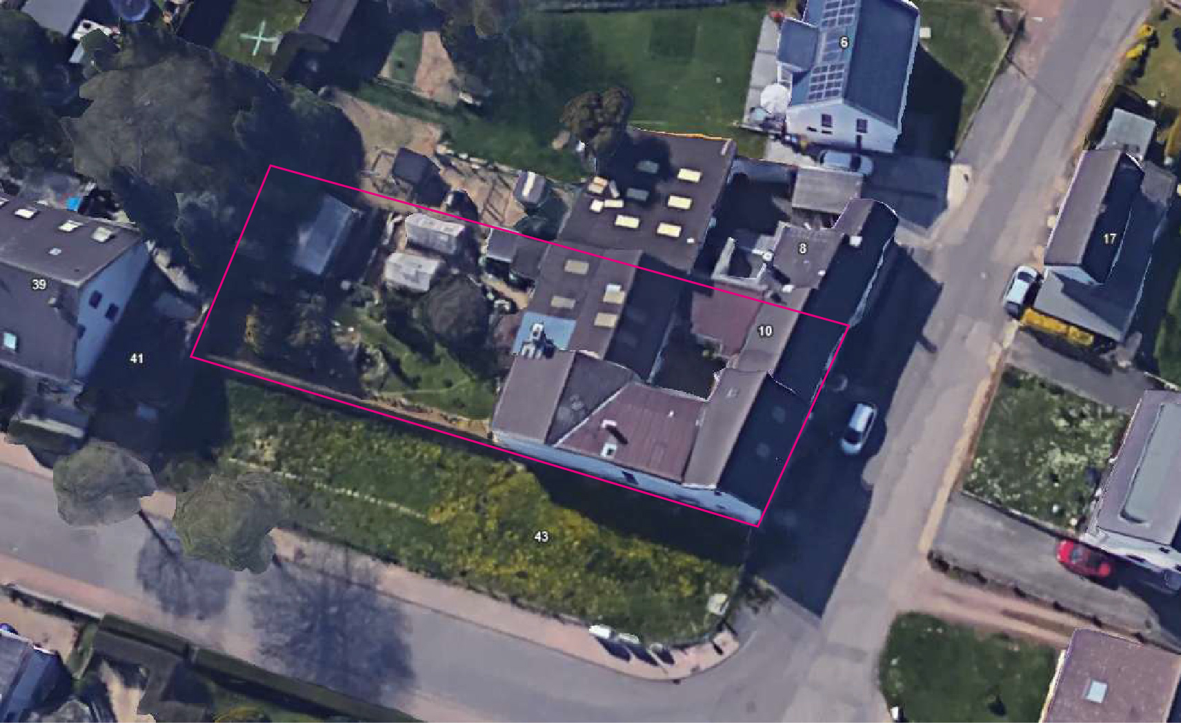Nebenan befindet sich das Fachwerkhaus (Wohnhaus Nr. 10, Baujahr ca. 1900). Dieses Gebäude weist starke Bauschäden, Feuchtigkeitseinwirkung und eine marode Substanz auf. Eine wirtschaftliche Sanierung erscheint nicht sinnvoll, weshalb ein Abriss oder vollständiger Ersatzbau als realistische Option betrachtet werden sollte.